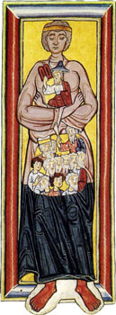 Por eso has visto la imagen de una mujer, pálida de la cabeza al ombligo: esta es la Sinagoga, madre de la Encarnación del Hijo de Dios, que, desde el despuntar de sus hijos hasta el apogeo de su fuerza, previo en las penumbras los secretos del Señor, pero no los manifestó plenamente; pues no es ella la rutilante alborada que abiertamente habla, sino que en lontananza la vislumbra, llena de admiración, como dice de ella en el Cantar de los Cantares: